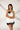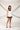 A strapless white mini-dress adorned with intricate black floral appliqués that bloom elegantly across the neckline and hemline. The dress features clean, structured lines that exude sophistication, while the contrast of black and white adds a striking, artistic appeal. Perfect for evening soirées or high-fashion events, this piece embodies minimalism with a dramatic flair.